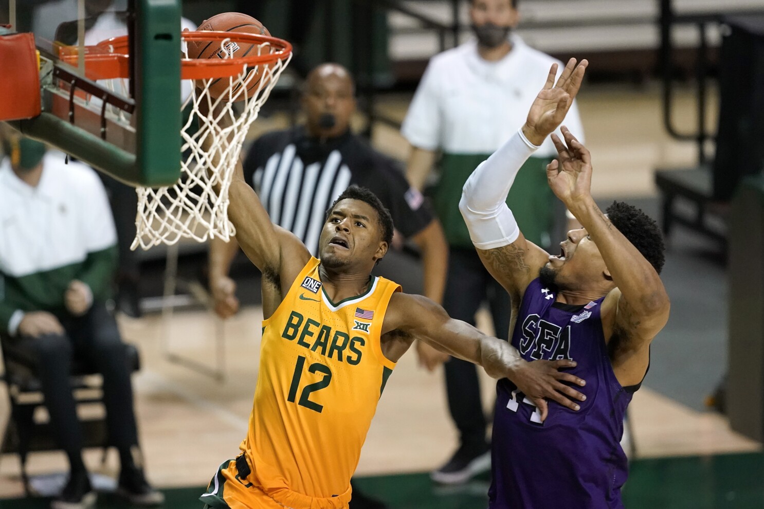College Basketball No 2 Baylor Rolls Past Stephen F Austin In Delayed Opener Los Angeles Times